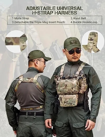 Adjustable & Detachable: Micro chest rig Max waist:41inches; Easy fits your body figures with adjustable universal H-Strap harness with buckle closure. Every part of the chest rig can be dismantled, You are free to assemble it into your favorite chest rigs.