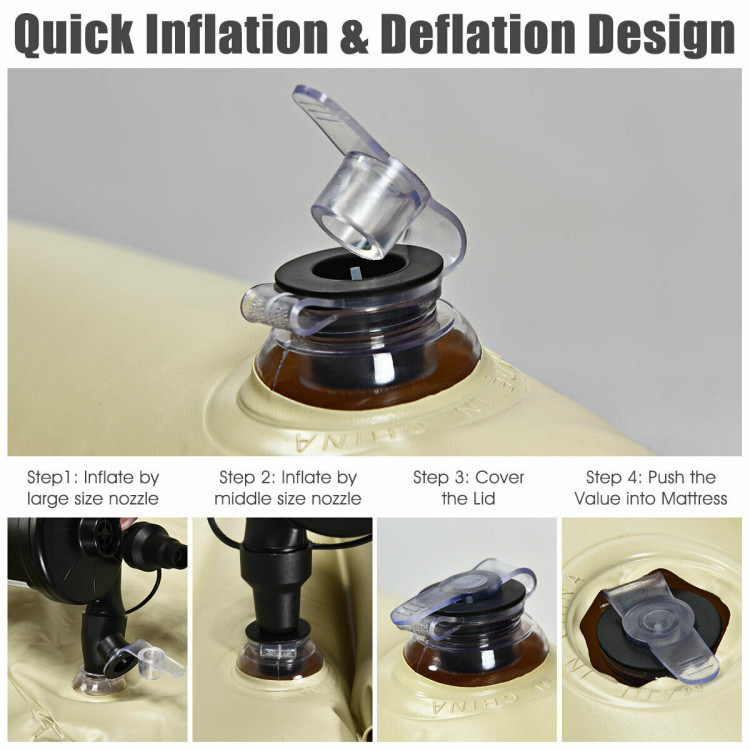 inflate the mattress, you can simply plug the pump into the car's cigarette lighter socket and pump air into the mattress with nozzles.