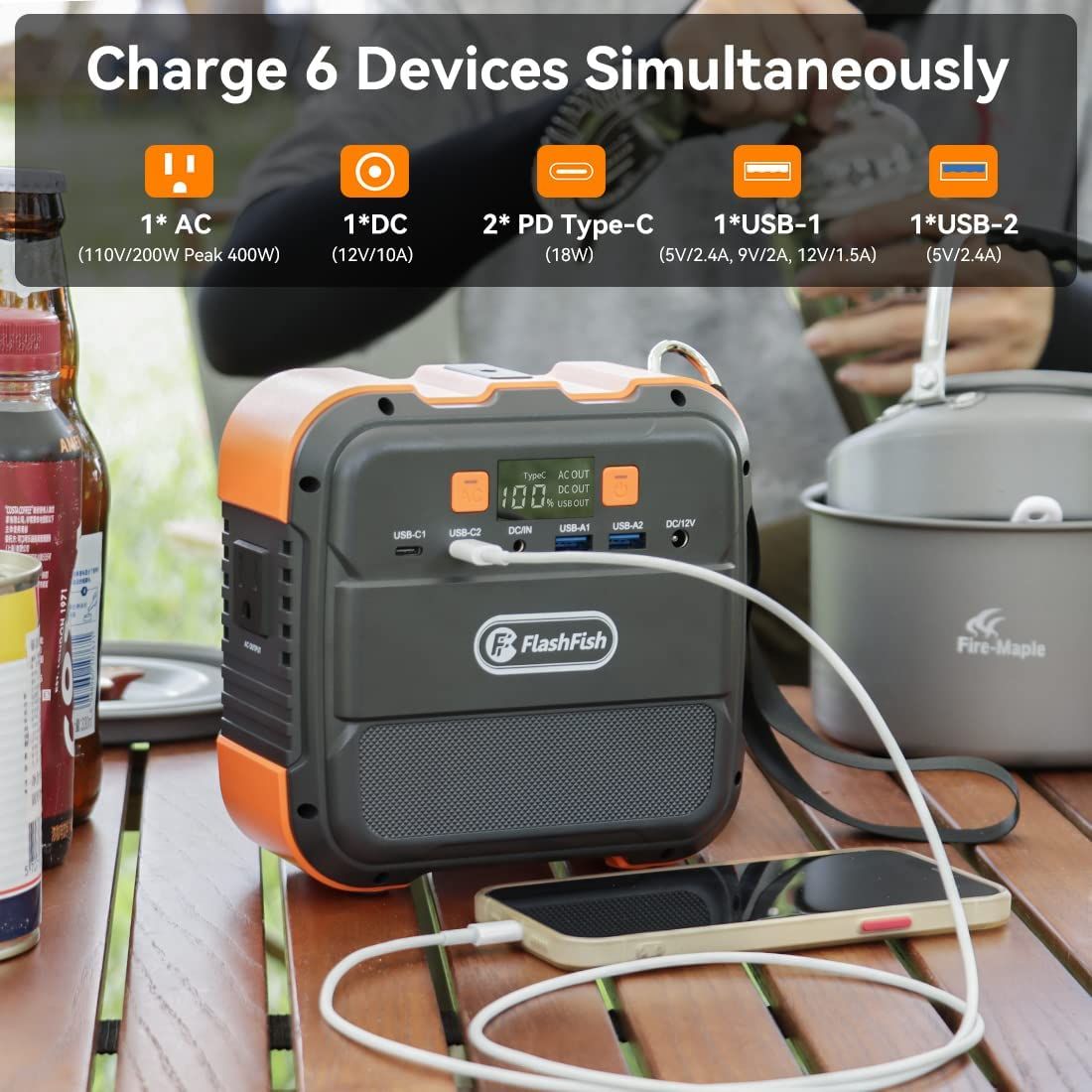 Flashfish 120W Portable Power Station, 98Wh/26400mAh Solar Generator Backup Power Battery Pack With AC/DC/Type-c/USB/Flashlight