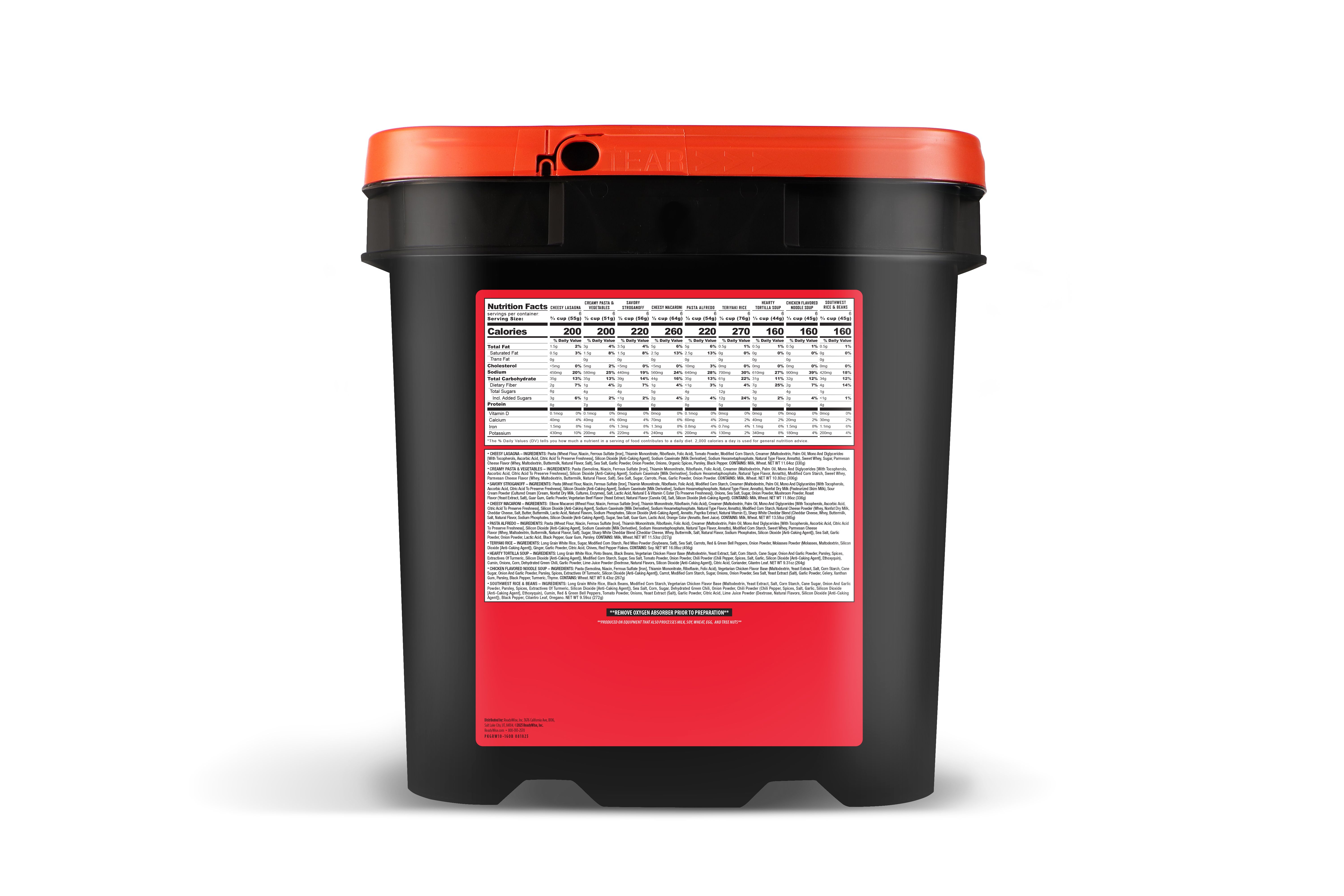 Our 60 serving emergency food supply bucket is a staple for any emergency. Whether you're affected by a snow storm, hurricane or other weather emergency, it's wise to be prepared. These great-tasting freeze-dried and dehydrated foods are ready in minutes when you just add water. They also come in stackable buckets with an easy Grab-N-Go handle, so they're easy to store and transport. 25 year shelf life if stored in a cool dry location.