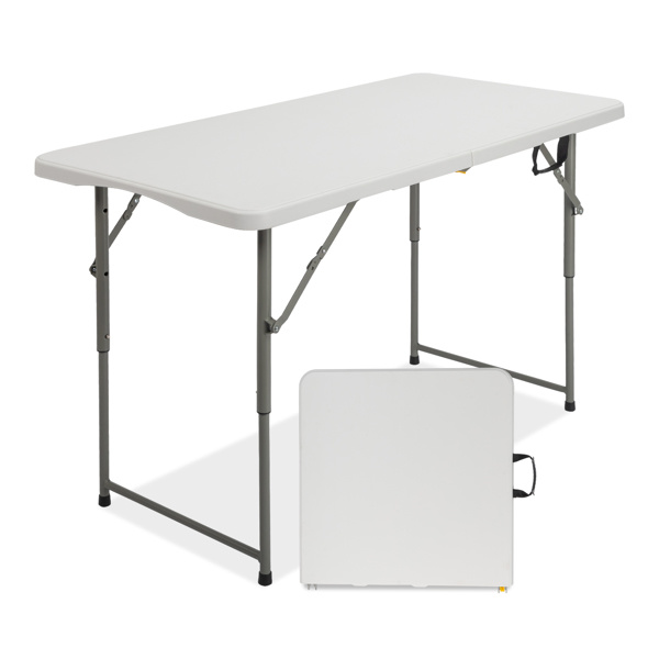 The 4ft Foldable Lift Patio Plastic Table is a best choice for you.  The table is made from HDPE and the leg is made of steel.  It's of great outdoor leisure furniture.  This table has small size and light weight so that it's easy to be fitted with your guard. This table also has the function of lifting and folding.  This is a best useful furniture for you.  It's structure simple and practical.  You can put it in your garden or in your guard.  You will like it so what are you still waiting for?