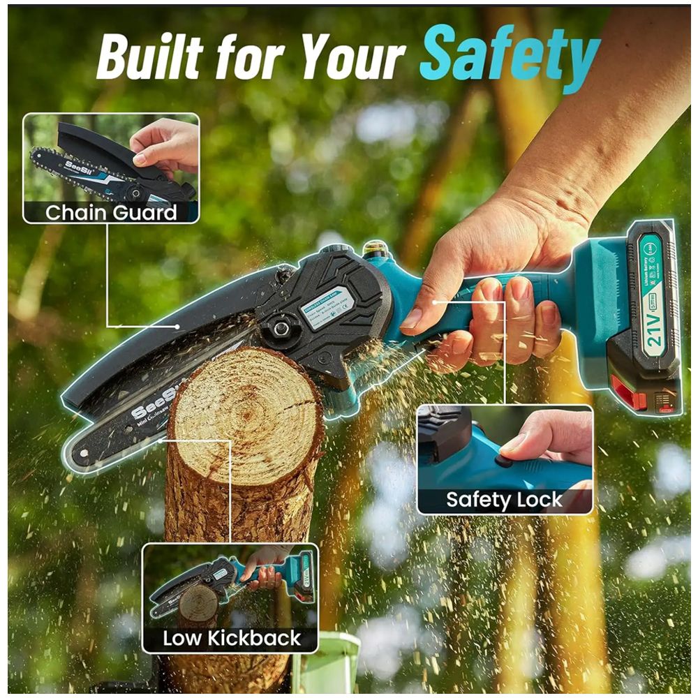 * Quiet Operation, Peaceful Work: Enjoy the quiet hum of your SeeSii mini chainsaw—perfect for early morning or evening tasks without disturbing neighbors or loved ones. It’s the perfect balance of power and peace of mind.