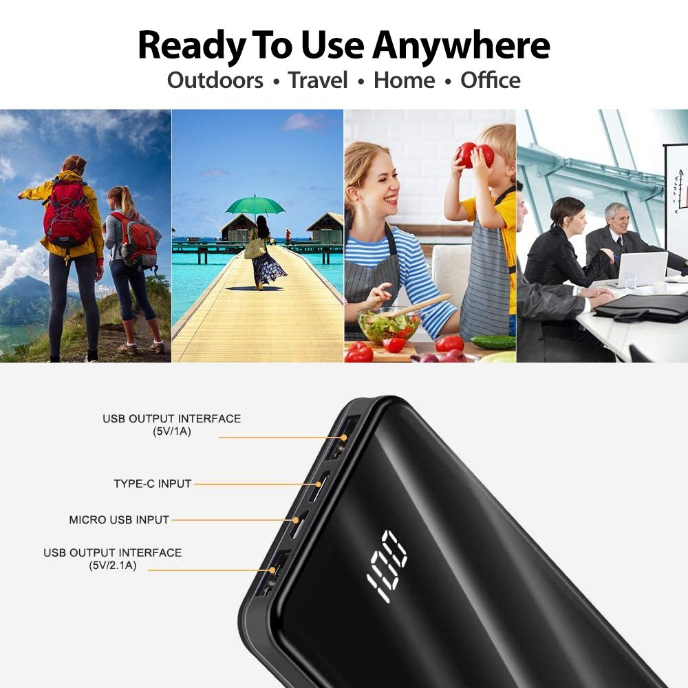 - High Charging Capacity - Large Capacity Portable Charger with 10,000mAh capacity so you don't have to worry loosing power while on-the-go. It's a perfect backup power for your daily phone and mobile device use