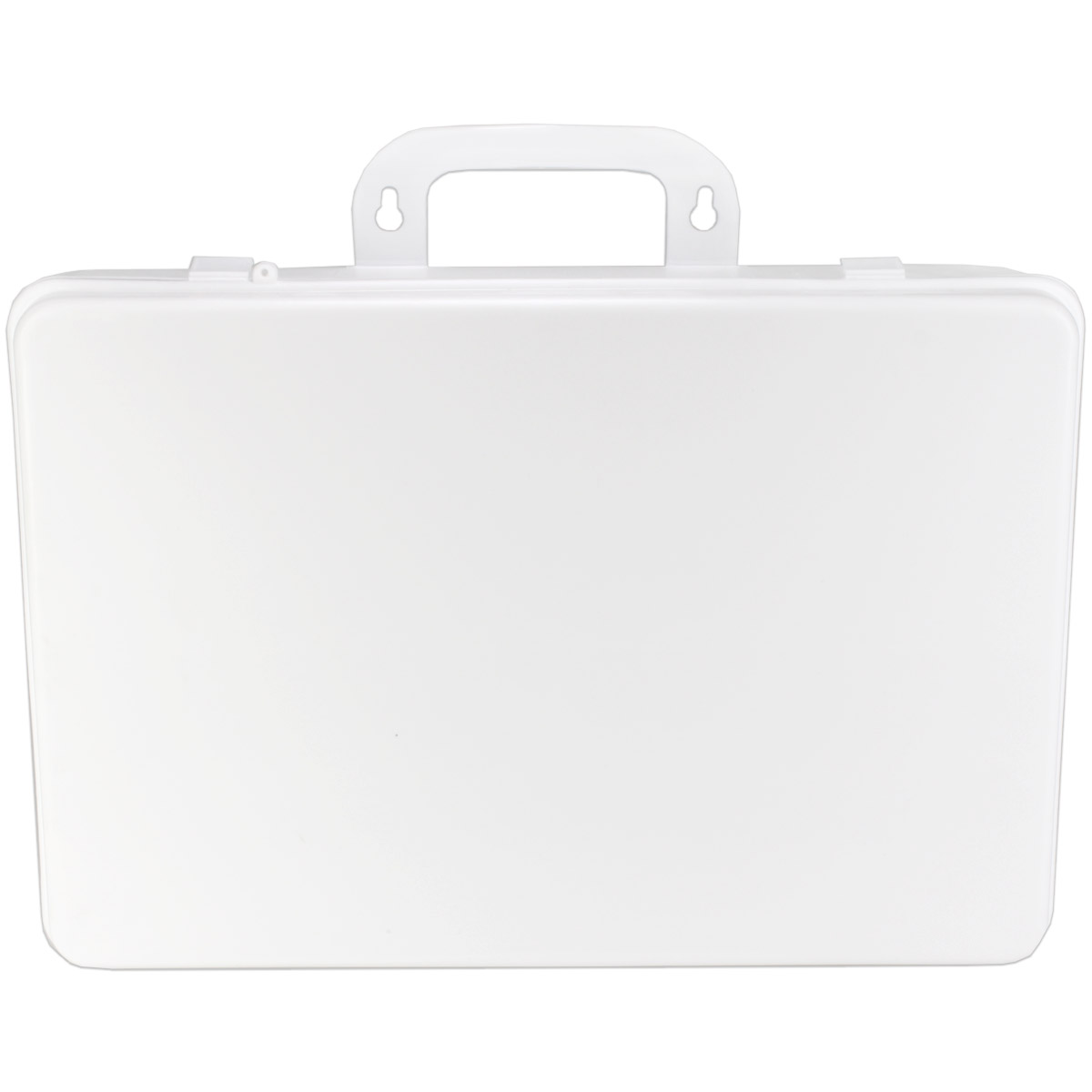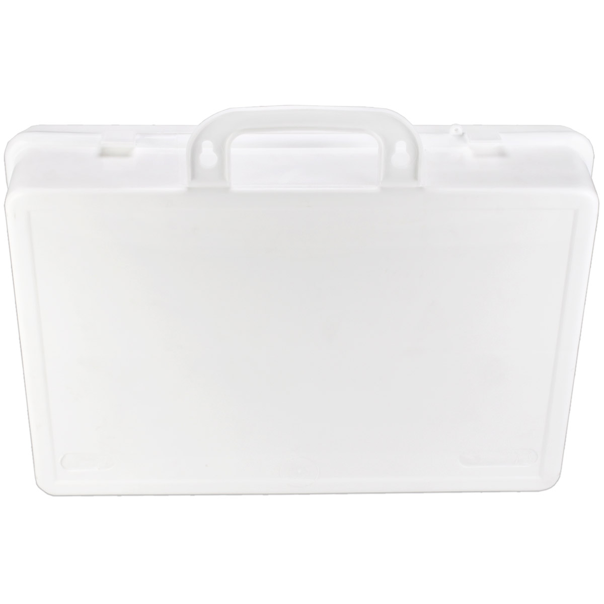 36 Unit, Empty Polypropylene Case w/ Gasket & Handle Hanger, 13-11/16"x 9-1/4"x2-3/4" - 1 Each This empty plastic first aid case holds up to 36-units of product and features a gasket and polypropylene handle hanger. This kit case features a fixed horizontal shelf/divider. Case Dimensions: 13-11/16"x9-1/4"x2-3/4"