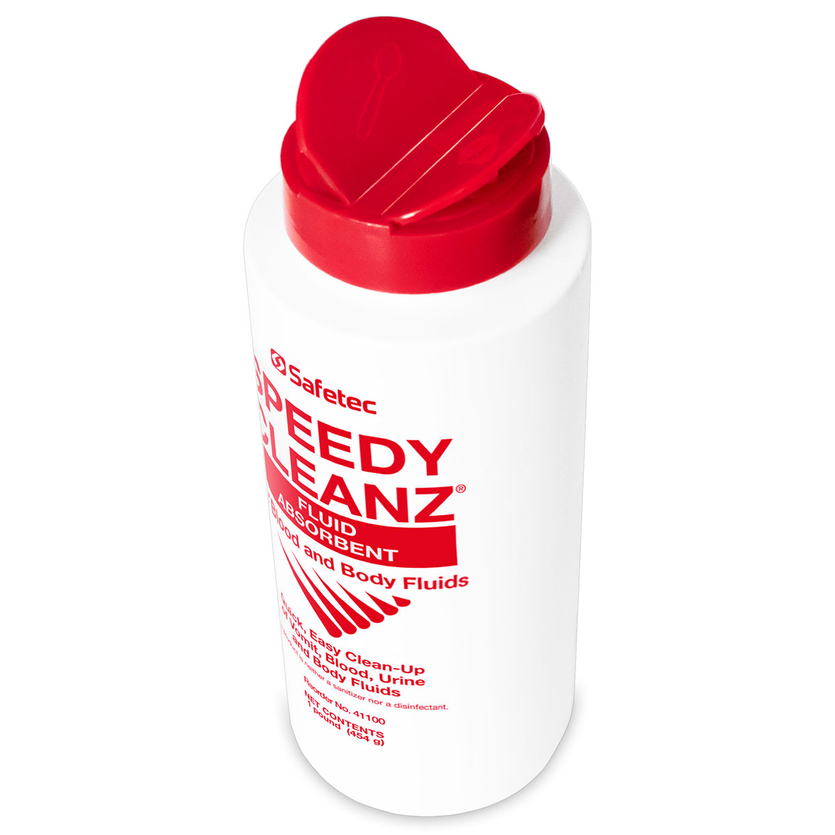 Speedy Cleanz Fluid Absorbent is the economical alternative to Red Z. Apply it to vomit or urine as well as other body fluid spills and watch it transform the liquid into an odorless, semi-solid mass. It’s non-toxic, biodegradable properties make it environmentally friendly and easily disposable. Non-slippery formula is ideal for use on floors Perfect in schools, veterinary offices, industrial facilities or anywhere there is the possibility to come in contact with body fluid spills Quick, Easy Clean-Up of Vomit, Blood, Urine & Body Fluids Buy American Safetec manufactures higher quality products by following strict compliance regulations with faster shipping advantages. 16 oz. Shaker Top Bottle - 1 pound (41100) 3" x 3" x 8.56"