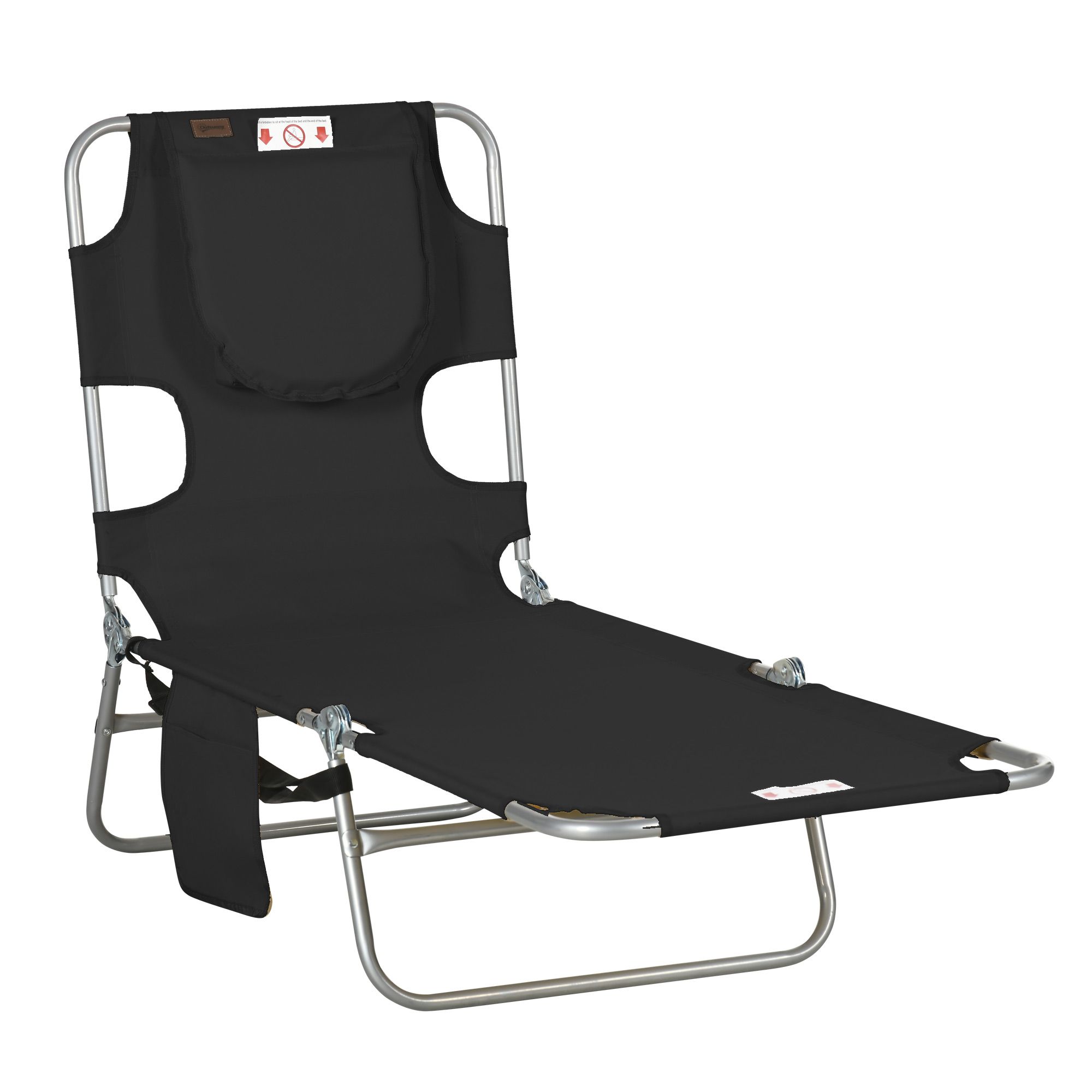 Do you wish you could bring the comfort of the resort on the road with you? You're a step closer. Outsunny has a folding chaise lounge so you can relax in the sun at the beach. Enjoy the outdoors; it features a 5-position reclining backrest, a reading hole for your head and arms, and a pillow. Place items in the pocket to keep them nearby. Made with tough Oxford fabric and water-safe powder-coated steel, it will follow you wherever the wilderness takes you. Get out, get comfy, get Outsunny.