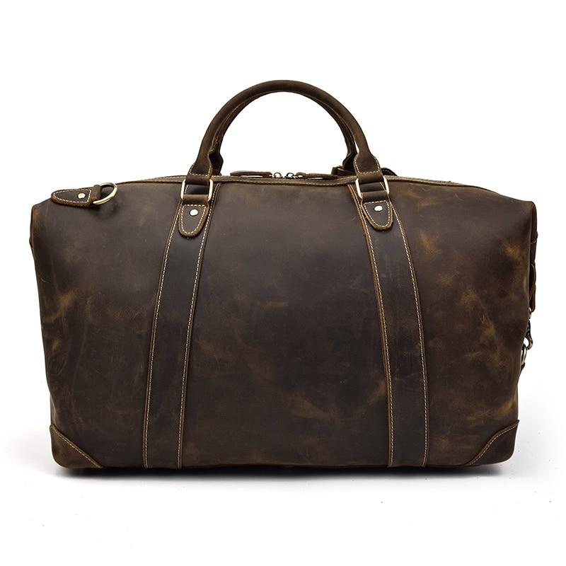 This classy leather duffle bag provides a complete handbag experience. It is spacious, able to easily store a 15' iPad or laptop, and stylish. The bag is made from premium-quality crazy horse leather which maintains this durable and long-lasting item. The leather handles ensure comfort, and the bag also allows for an optional shoulder strap, which is removable and adjustable. Available in two exquisite shades of brown, this duffle is sure to be a dependable complement to your outfit, whether you are going to school, work, or on a weekend trip.