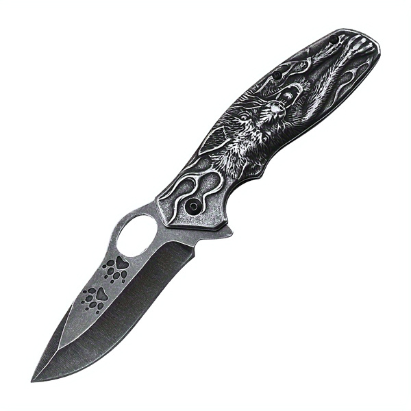 Wolf Handle Non-Slip Pocket Knife – Compact Folding EDC Knife with Carabiner Clip, Cool Box Cutter, Perfect Gift for Men