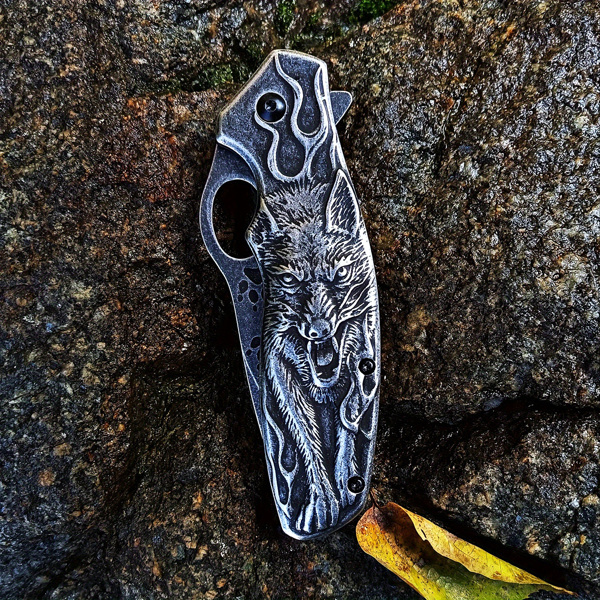 Home > Wolf Handle Non-Slip Pocket Knife – Compact Folding EDC Knife with Carabiner Clip, Cool Box Cutter, Perfect Gift for Men